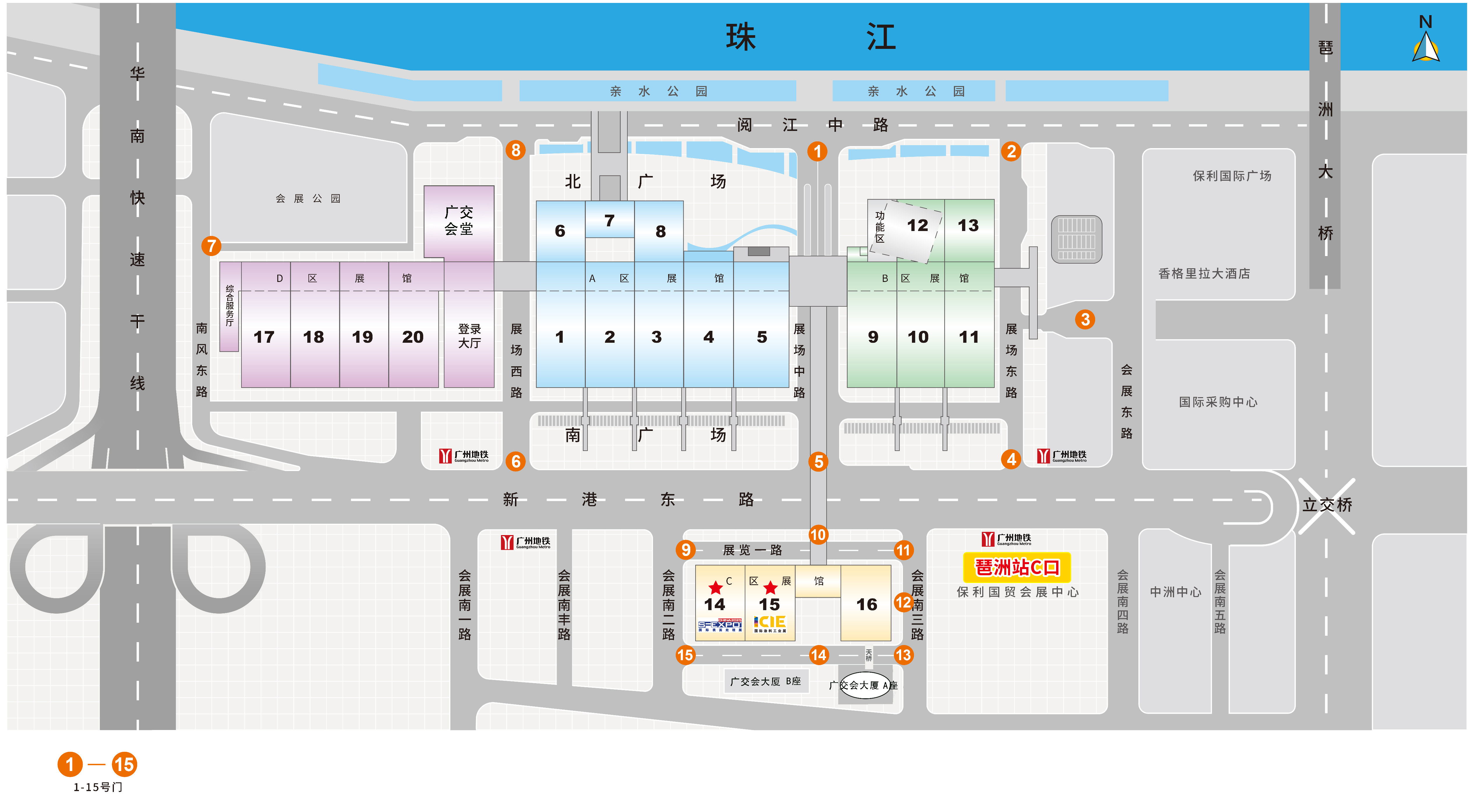 地鐵:約80分鐘。搭乘8號線(萬勝圍方向)至琶洲站C出口可到達展館。